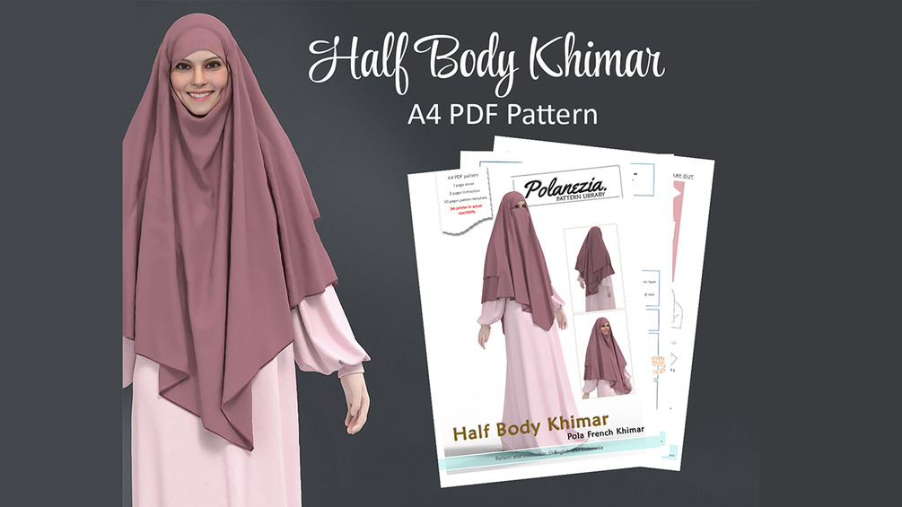This is an A4 pdf sewing pattern for hijab. Half body khimar.