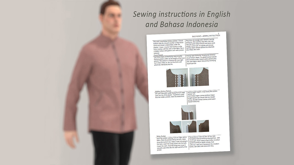 - Written instruction for sewing process in English and Bahasa Indonesia, with illustration.